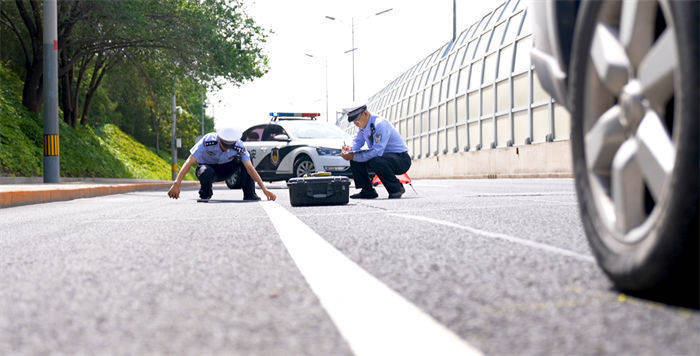 r张雷从这一点入手,借鉴测绘摄影技术,将传统直线型标尺改良为平行四边形的标尺,在现场勘查过程中,只需把标尺摆在痕迹附近,用相机进行拍摄,将照片上传到其研发的“道路交通事故快速处置系统”内,系统可自动生成所需的勘验要素,从而有效缩减现场勘查的时间。